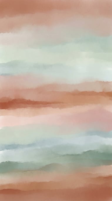 Dreamy abstract gradient landscape, gentle horizontal layers of muted warm clay and cool pale sage