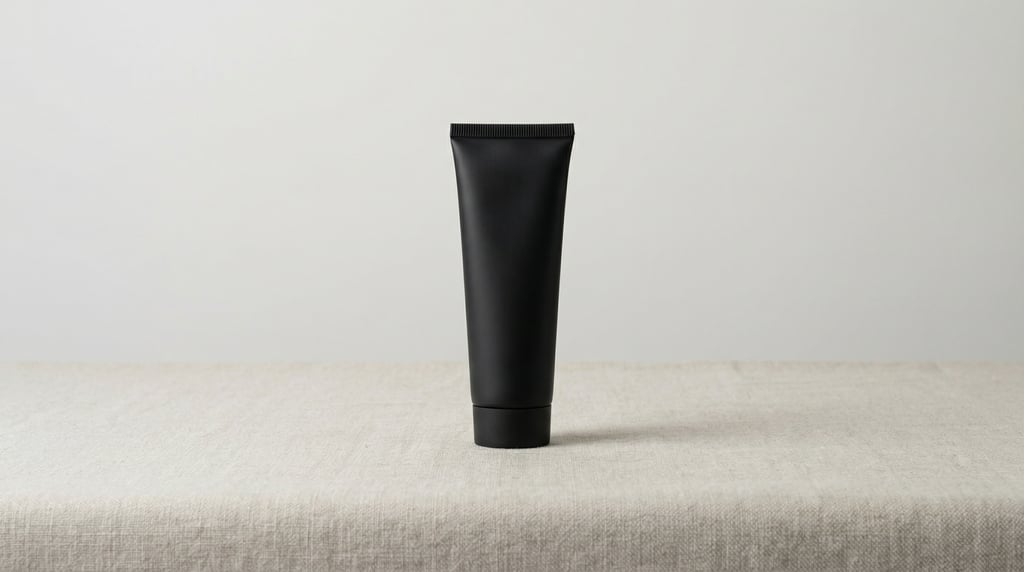 Squeeze tube in matte black, single centered on a clean surface